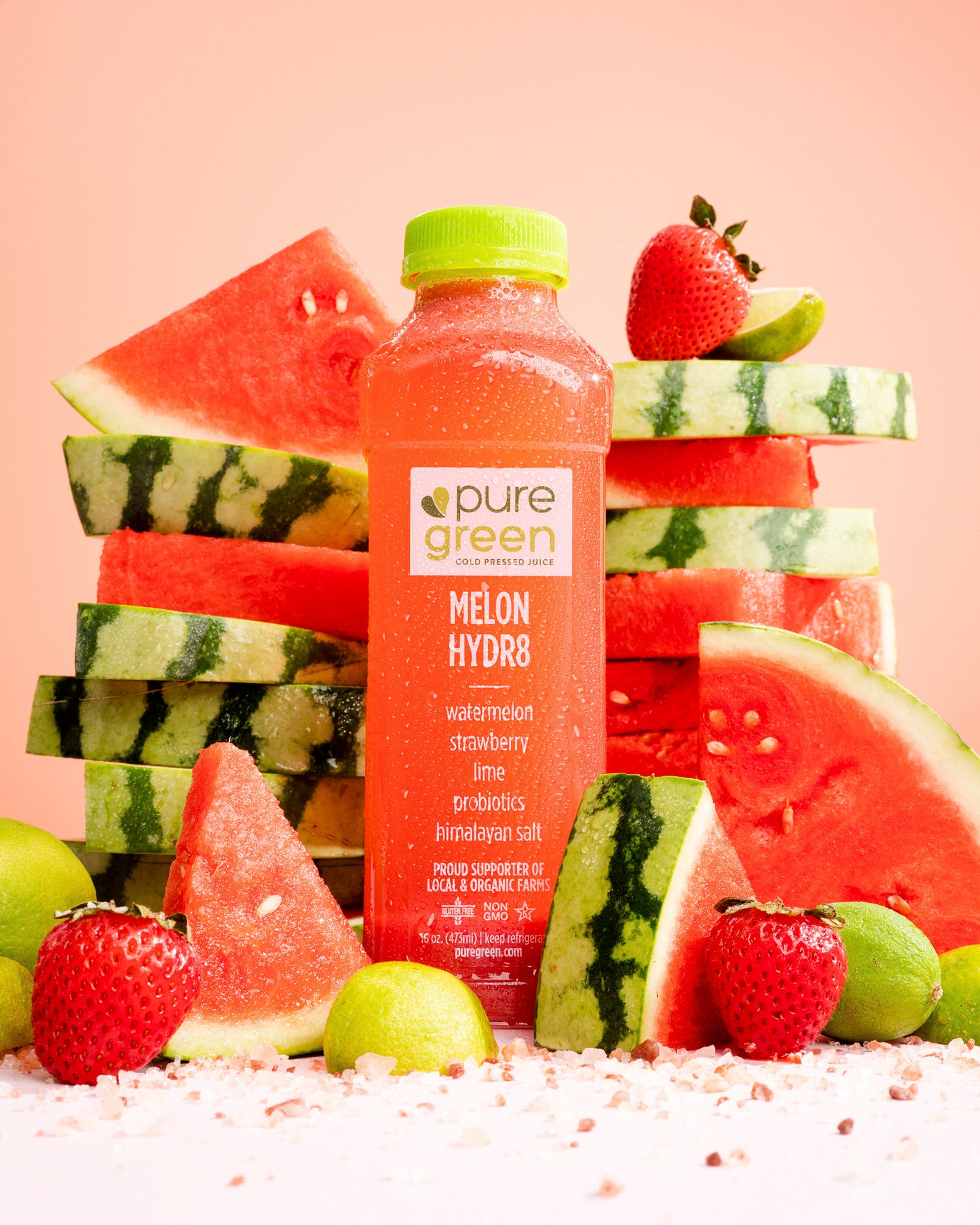 THE PURE WATERMELON COLD PRESSED JUICE IS A SIMPLE BUT MOUTH WATERING FLAVOR COMBINING COLD PRESSED WATERMELON WITH A TOUCH OF LEMON.